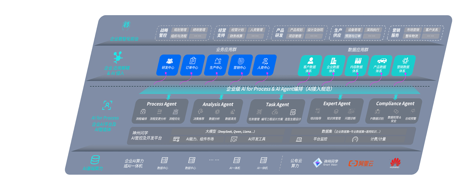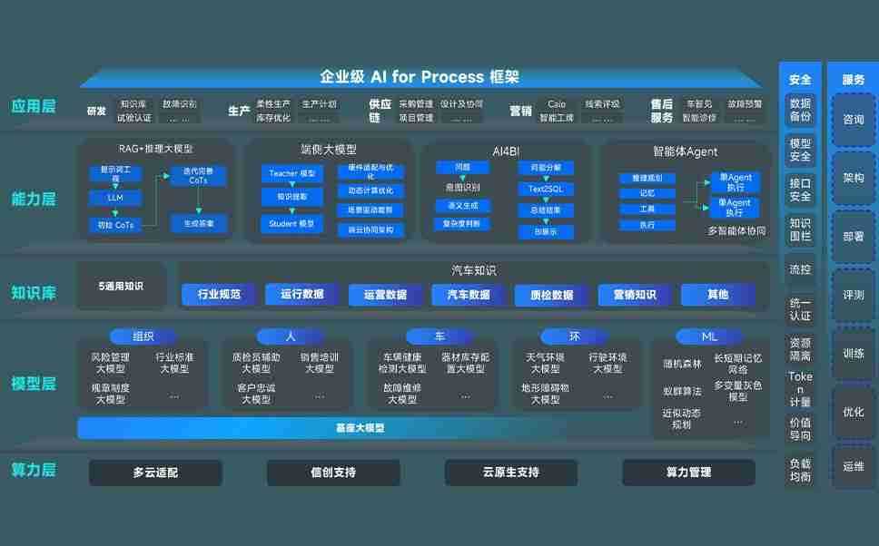 端到端的一站式AI工作空间深度融合了从企业战略规划到日常经营的全流程业务板块,,定向解决车企内部领域多、、部门多、、链条长、、场景碎片化等难题,,支持车企快速构建以AI为核心的生产力写作体系,,,,实现任务执行与AI能力的无缝集成与交互