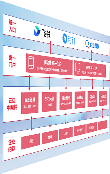 对协作平台提供支持服务,,,,支持企业应用与协作平台对接,,包含组织同步、、、消息集成、、、待办集成等。。。支持目前主流的协作平台:钉钉、、、企微和飞书。。